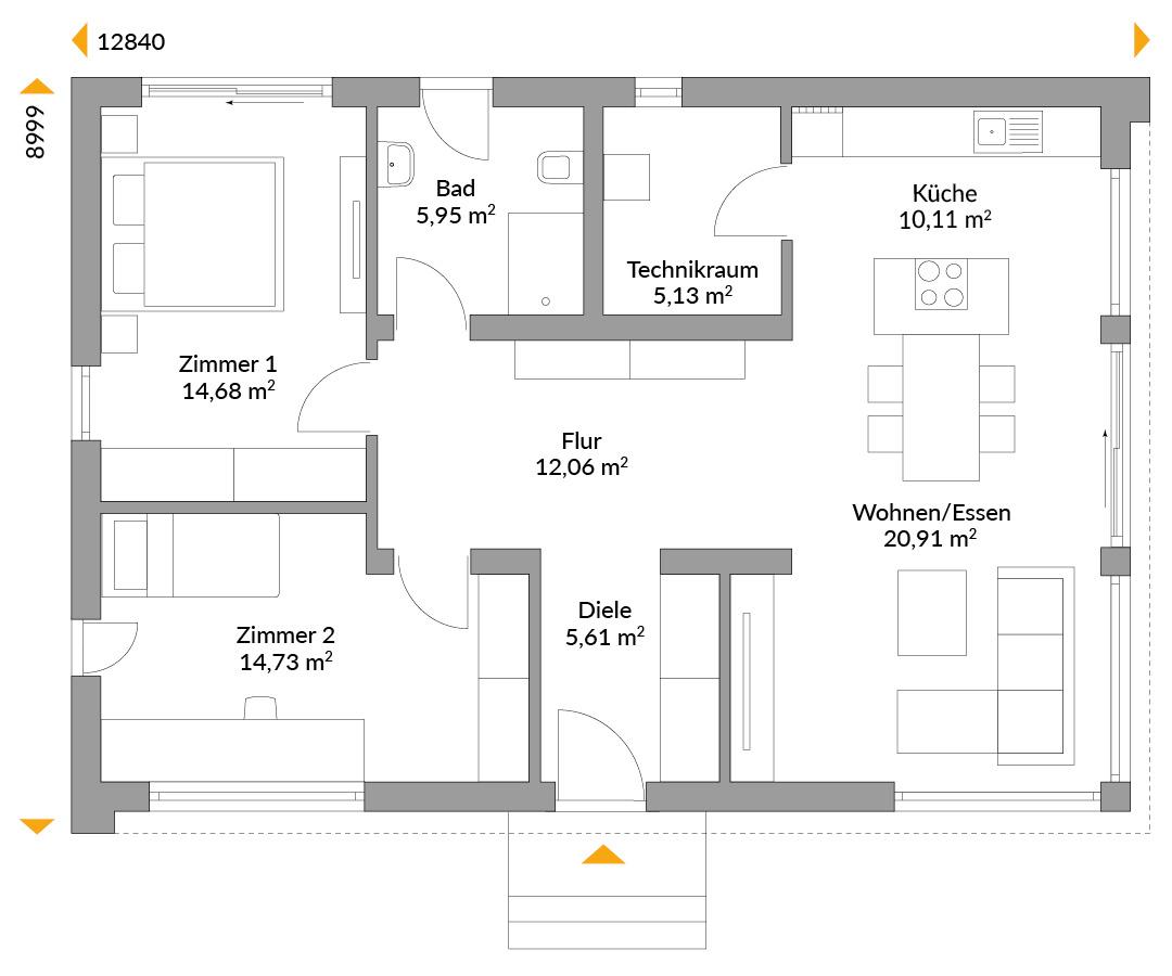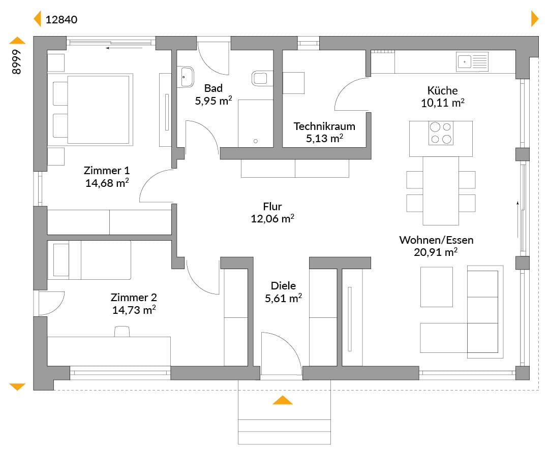 Von außen ein Blickfang und von innen ein Lichtfänger. NEXT 90F überzeugt mit einer terrassenseitigen Glasfront inklusive Eckverglasung sowie einer klaren Linienführung. Diese Elemente moderner Architektur harmonieren bestens mit dem flachen Dach und sind vom angesagten Bauhausstil inspiriert.