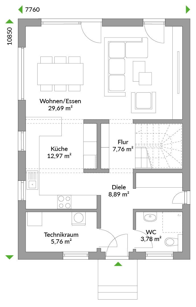Beliebt wie nie ist das Family 133! Von außen sehr elegant, entpuppt es sich im Innern als wahres Paradies für Kinder und Eltern. Drei interessante Grundrissvarianten bieten unglaublich viel Platz. Offene Küche mit angrenzendem Wohn-Essbereich, geschlossene Küche mit direktem Zugang zum Hauswirtschafts-/ Technikraum, oder integrierter Küche im Wohn-Essbereich – drei Wahlmöglichkeiten für das Herz eines Familienhauses, die allen Bedürfnissen gerecht werden. Neben Gästetoilette mit Dusche bietet eine zusätzliche Garderobe jede Menge Platz und Ordnung für Schuhe, Taschen, Sportsachen etc. in der Diele. Drei Zimmer, Badezimmer und zusätzliche Ankleide bieten eigene Zimmer für die Bewohner und Platz zum Erholen und Schlafen. Noch mehr Stellfläche im Obergeschoss gewünscht? Kein Problem! Erhöhen Sie den Kniestock einfach auf 1,25 m oder 1,50 m.
